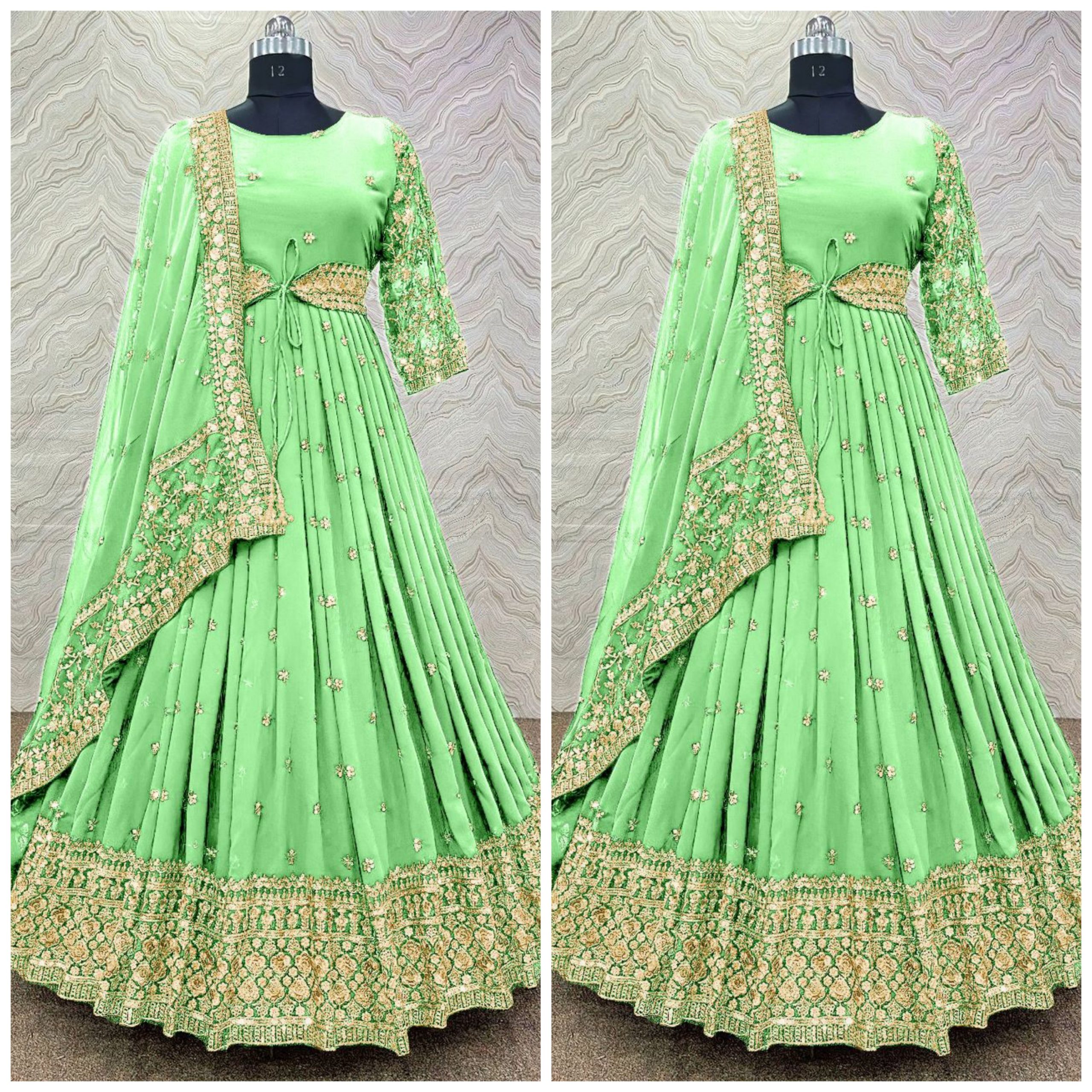 সেমী স্টিচড জর্জেট এমব্রয়ডারি লং ফ্লোর টাচ আনারকলি পার্টি ড্রেস