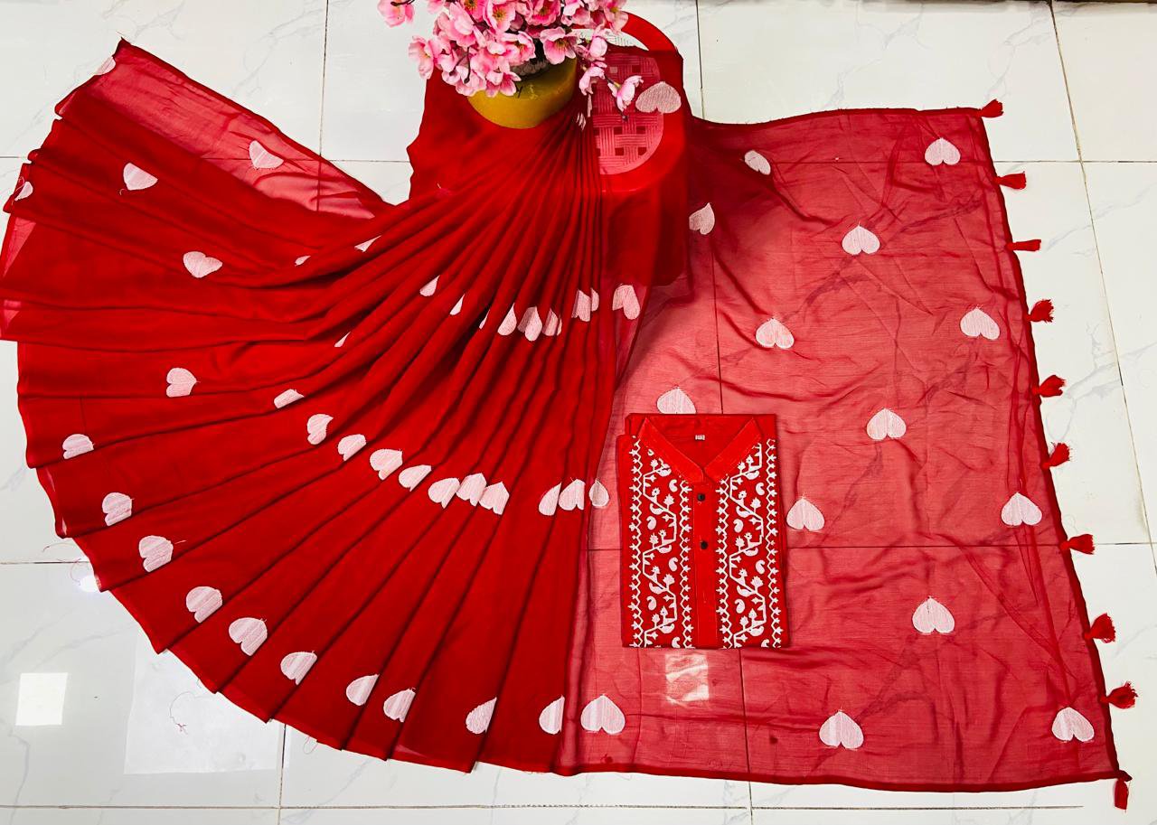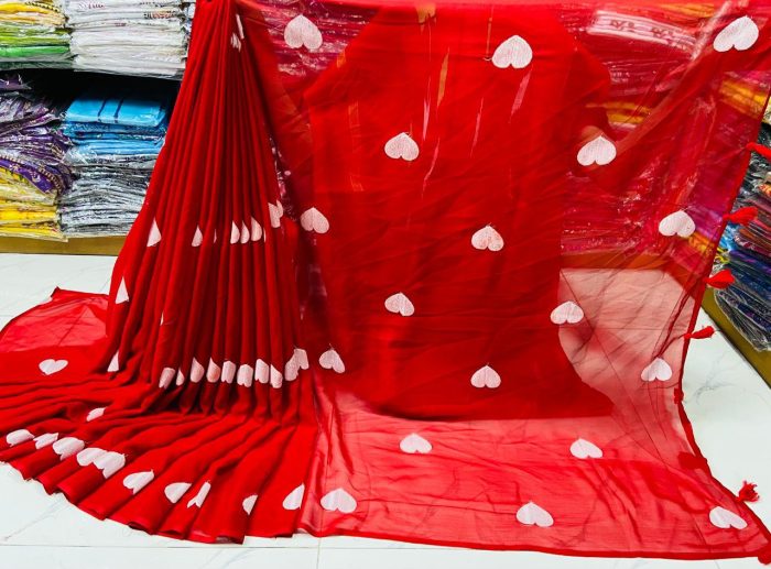 জর্জেট সারিতে এমব্রয়ডারি কাজ করা ও ধুপিয়ানসিল্ক পানজাবি তে ব্লক প্রিন্ট কাজ করা। কাপল সেট।