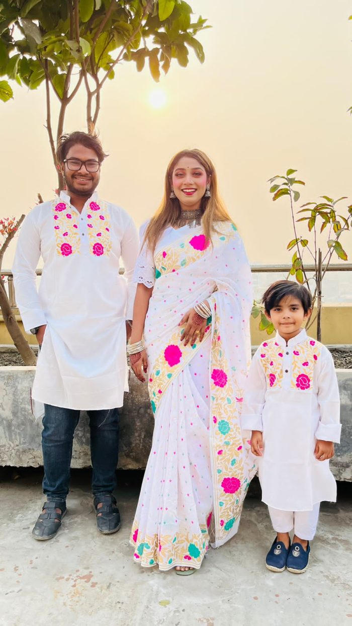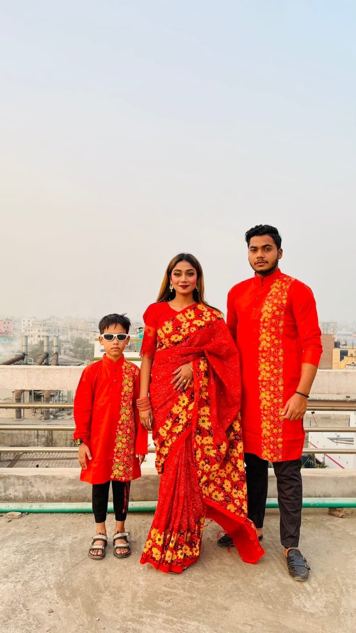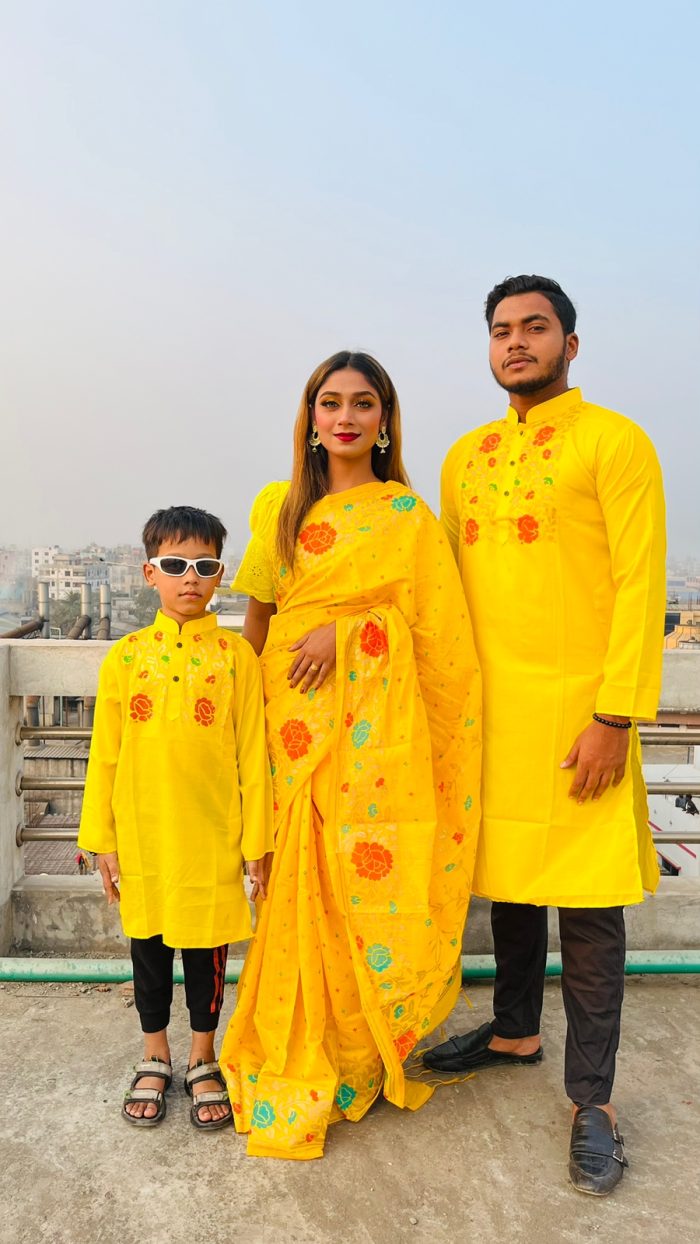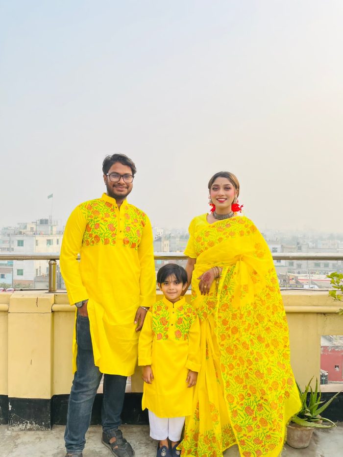 ধুপিয়ানসিল্ক ও হাফসিল্কের শাড়ী এবং ধুপিয়ানসিল্ক পানজাবি তে ব্লক প্রিন্ট ও স্কিনপ্রিন্ট কাজ করা। বাচ্চা সহ কাপল সেট। যত যত দিচ্ছে তত পিস নিতে পারবে,পাঞ্জাবি যে কোন সাইজ দেওয়া যাবে ১৬ থেকে শুরু করে ৪৮ পর্যন্ত সাইজ সারা বাংলাদেশে ক্যাশ অন ডেলিভারি প্রবাসে বসে অর্ডার করুন পন্য পৌঁছে যাবে আপনার দেওয়া ঠিকানায় অনুযায়ী আপনার বাসায়
