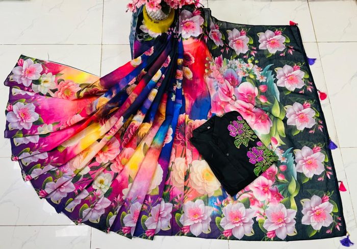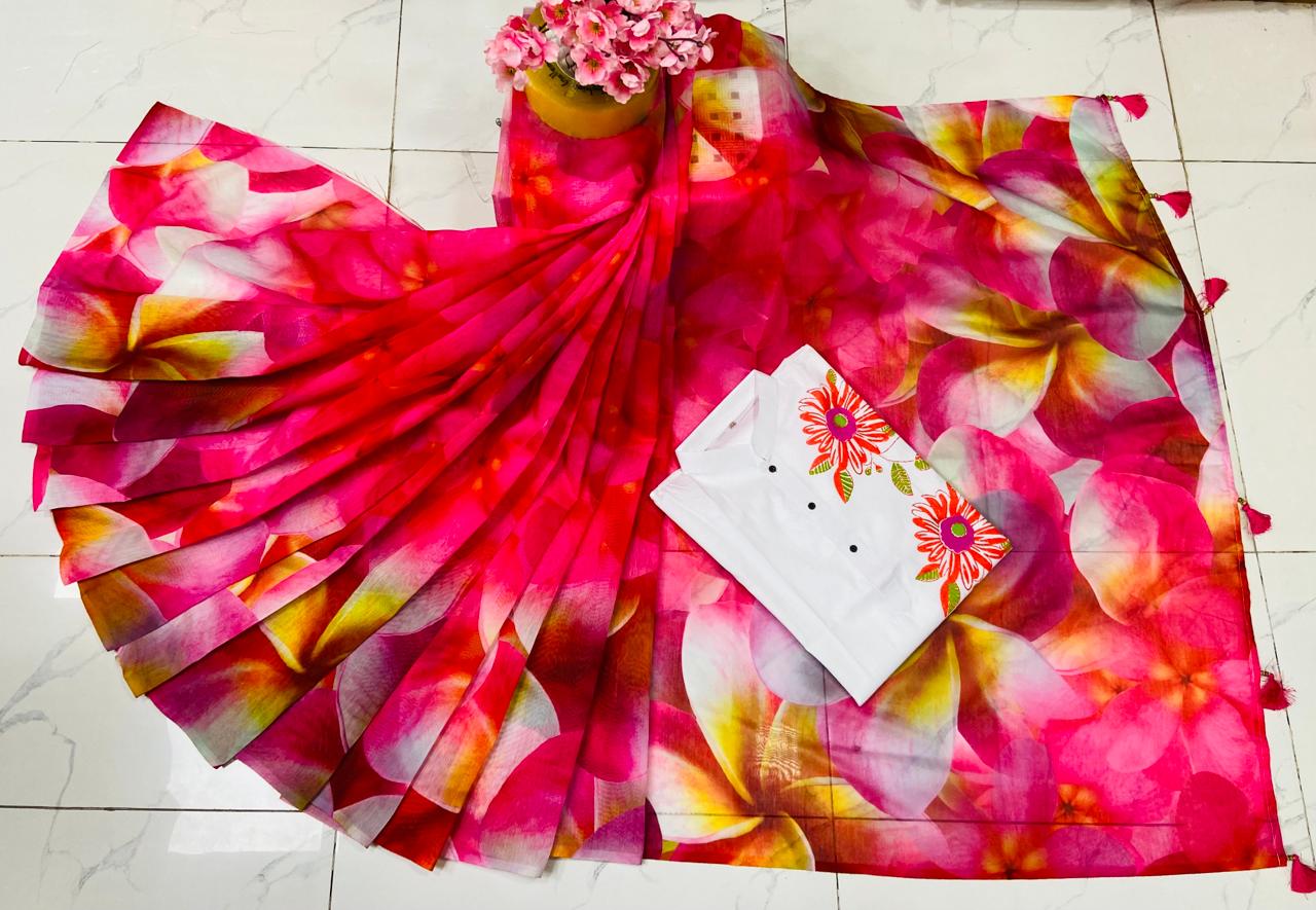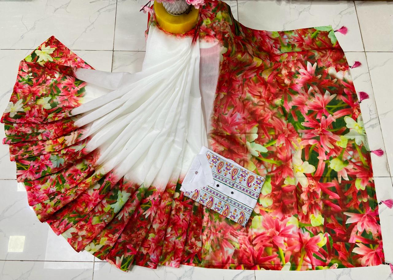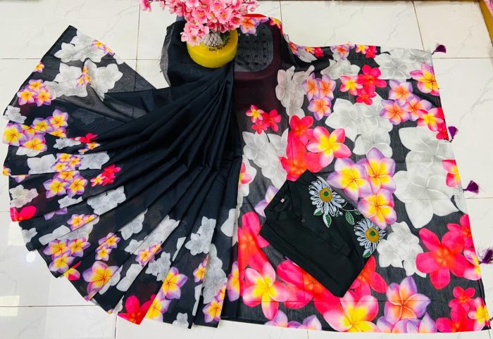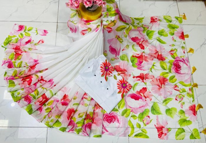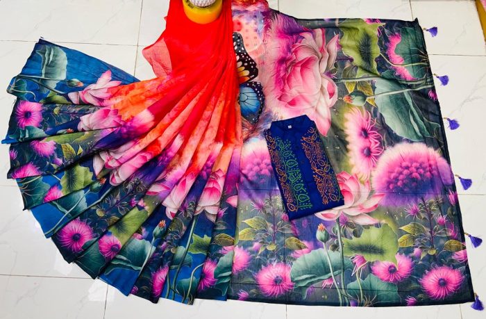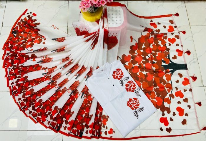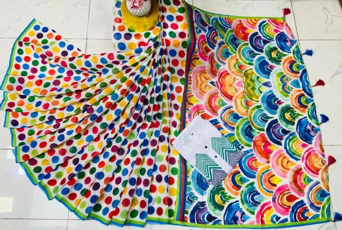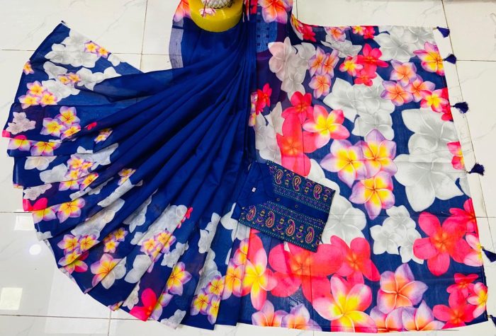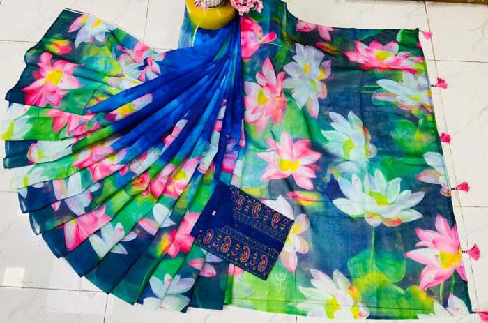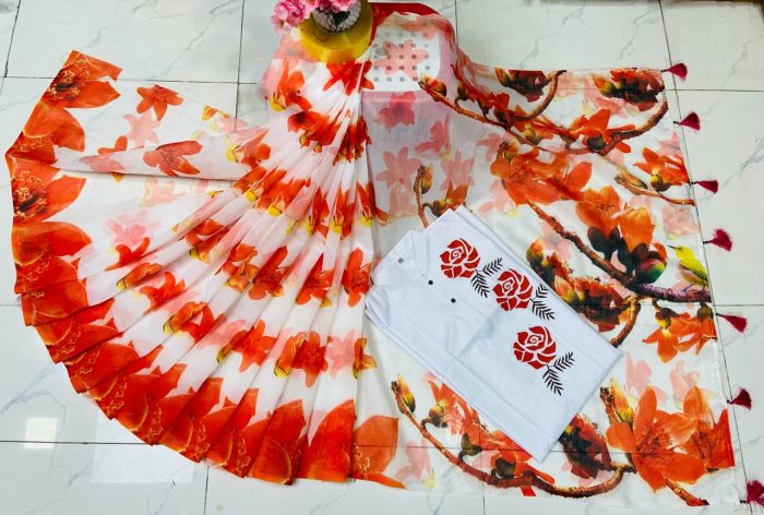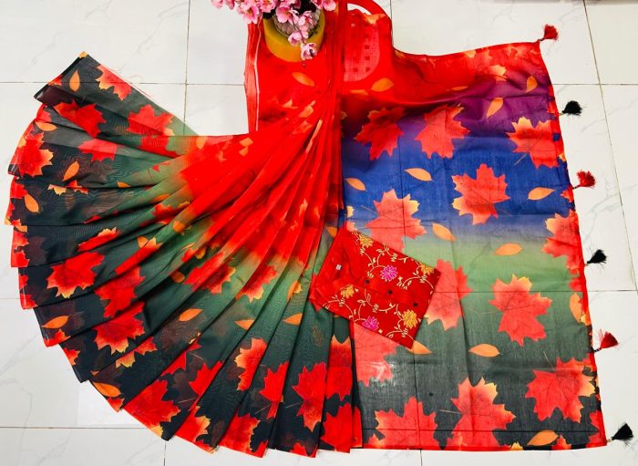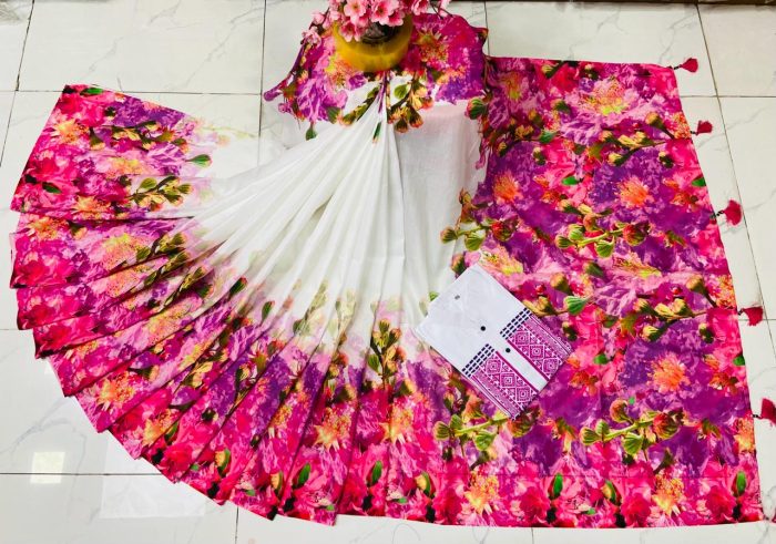 চান্দুরী সিল্ক শাড়ী ব্লক প্রিন্ট