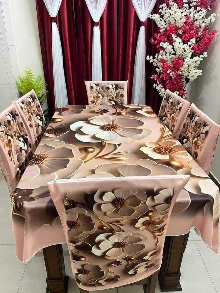 আপনার ডাইনিং রুমের সৌন্দর্য এবং শোভা বাড়াতে আমরা নিয়ে এসেছি নান্দনিক ডিজাইনের রুচিশীল মানসম্মত ডাইনিং টেবিল চেয়ার কভার। ১৯০ জিএসএম কোরিয়ান ভেলভেট কাপড়ের উপরে ডিজিটাল 3D প্রিন্ট এর টেবিল ও চেয়ার কভার।