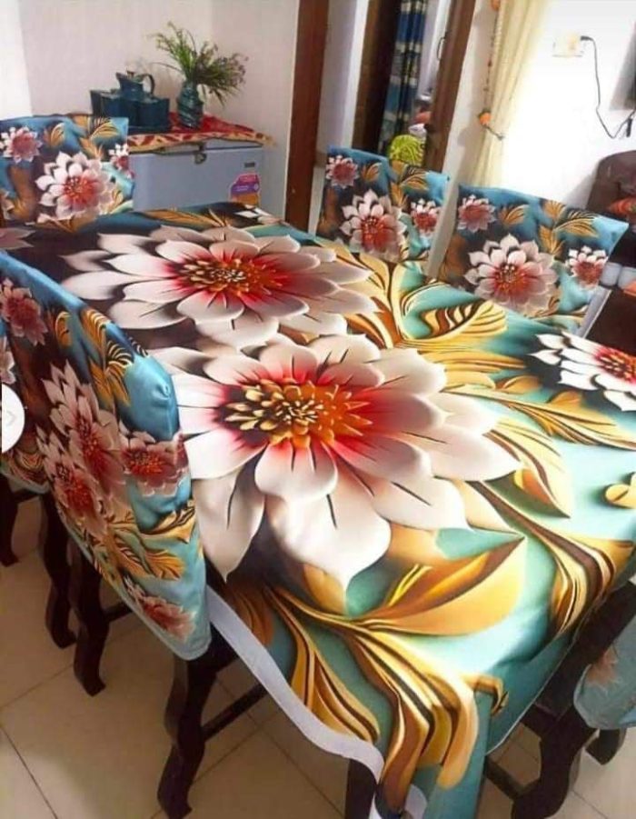 আপনার ডাইনিং রুমের সৌন্দর্য এবং শোভা বাড়াতে আমরা নিয়ে এসেছি নান্দনিক ডিজাইনের রুচিশীল মানসম্মত ডাইনিং টেবিল চেয়ার কভার। ১৯০ জিএসএম কোরিয়ান ভেলভেট কাপড়ের উপরে ডিজিটাল 3D প্রিন্ট এর টেবিল ও চেয়ার কভার।