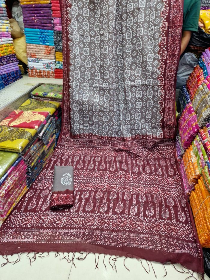 সুতি ভেজিটেবল বাটিক শাড়ী