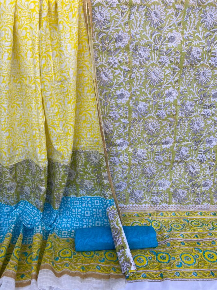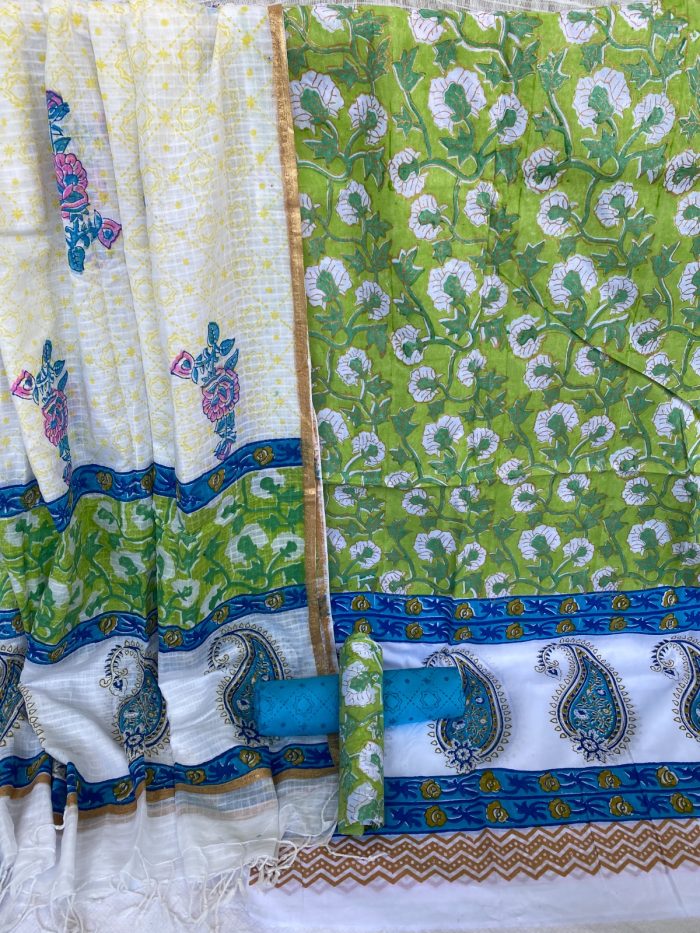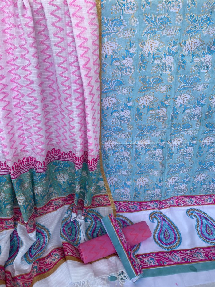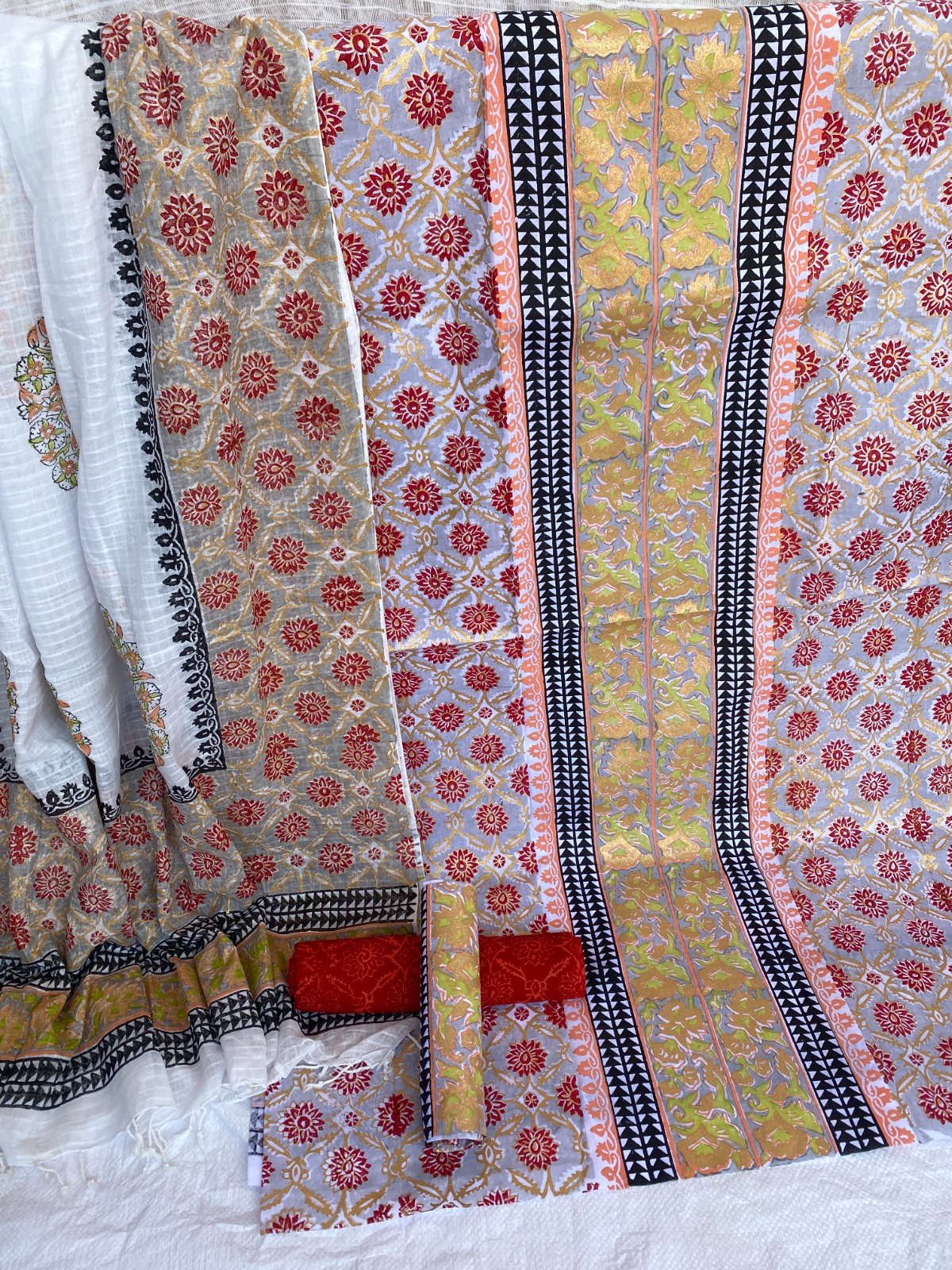 🎯বুটিক্স হাই কোয়ালিটি কোটা ওড়না ব্লক থ্রি পিস।