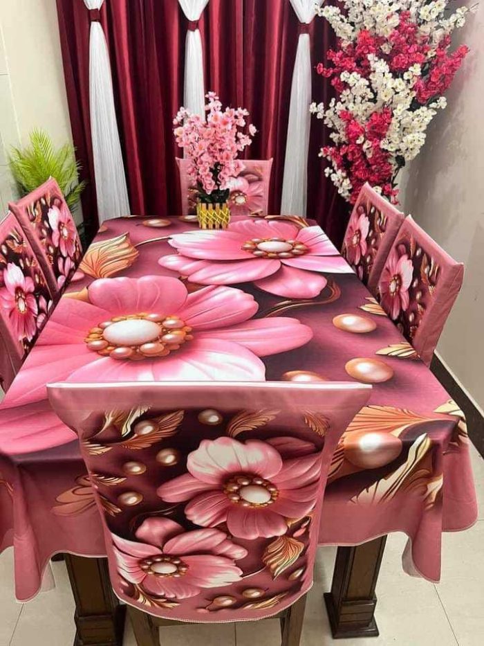 আপনার ডাইনিং রুমের সৌন্দর্য এবং শোভা বাড়াতে আমরা নিয়ে এসেছি নান্দনিক ডিজাইনের রুচিশীল মানসম্মত ডাইনিং টেবিল চেয়ার কভার। ১৯০ জিএসএম কোরিয়ান ভেলভেট কাপড়ের উপরে ডিজিটাল 3D প্রিন্ট এর টেবিল ও চেয়ার কভার।